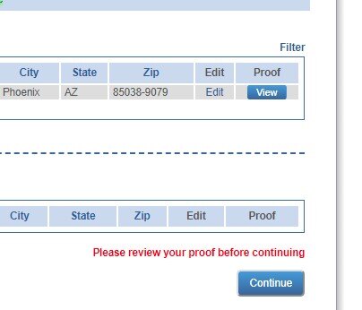 To assist you, we have provided some reminders to you along the way to make sure you review your documents before incurring any fees.  Before you click Continue on the Recipient Review page we prompt you in red bold text if we notice that you haven't reviewed a single proof yet.