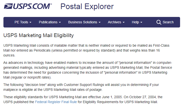 Source: https://pe.usps.com/StandardMailEligibility/Index