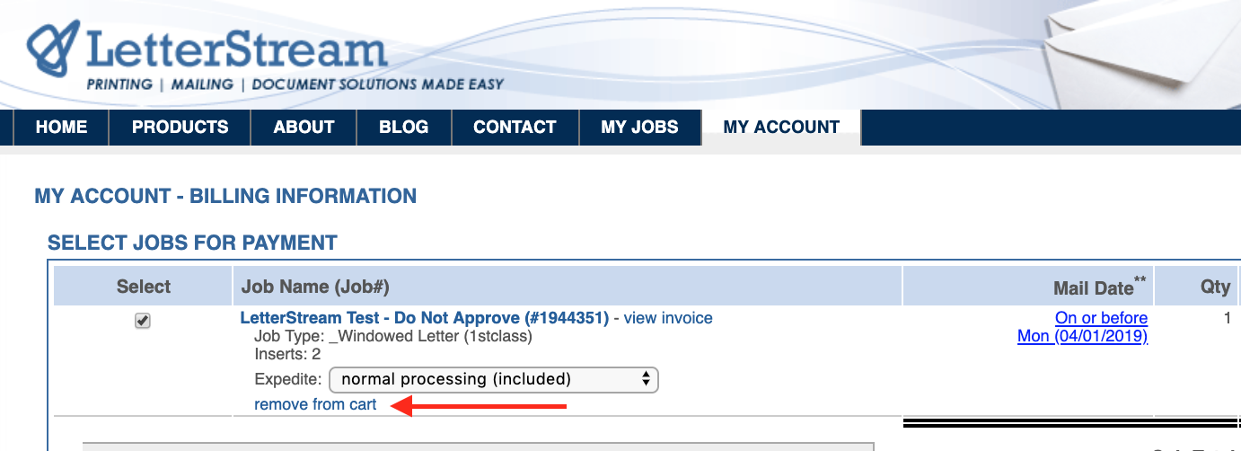 2. Locate your mailing in the "Action Required" section, and click on the job name or job ID