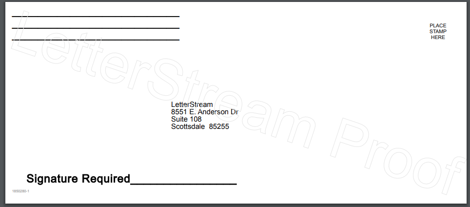 Additionally, if you are required to provide an area where the recipients have to sign the envelope you can use this section for that as well. Simply enter "Signature Required ______________" as the endorsement text and it will show on the return envelopes throughout your mailing as so: